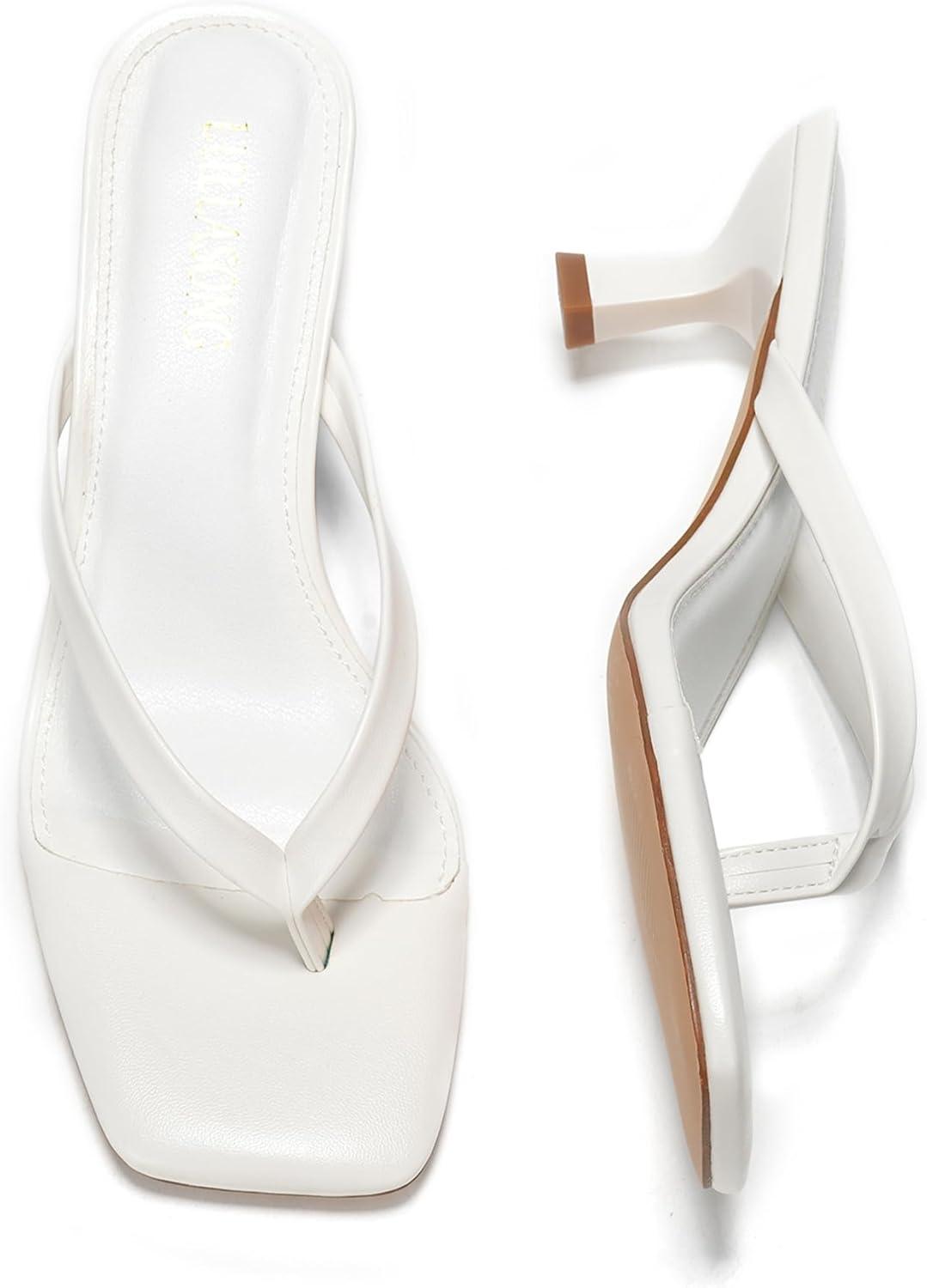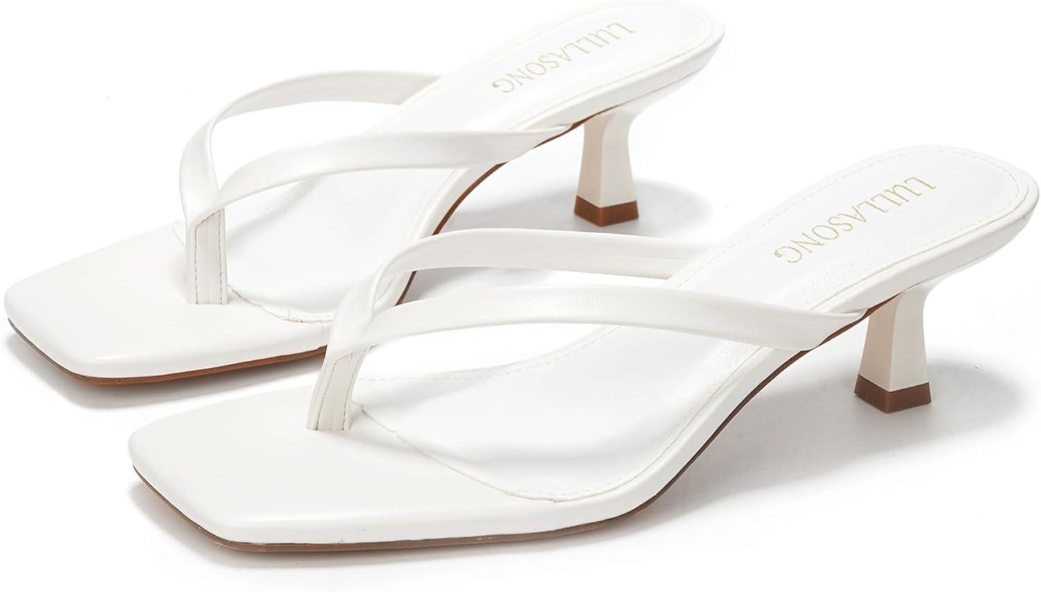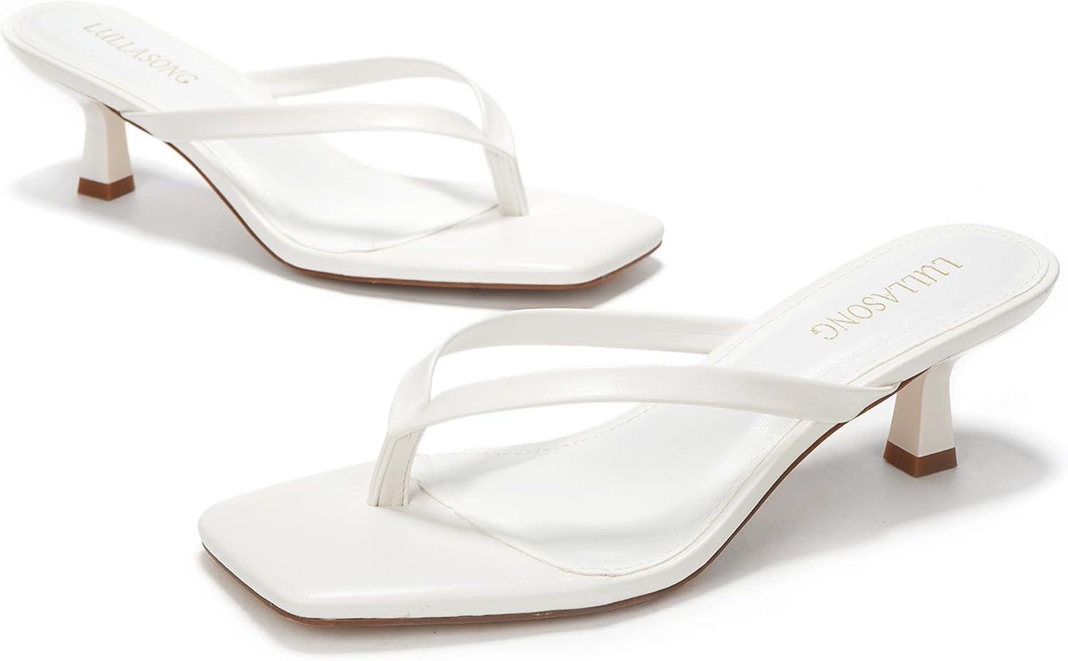 Women’s Kitten Heels Sandals Square Open Toe Flip Flop Heels 1.8-2 Inch Heeled Sandals for Women(White)